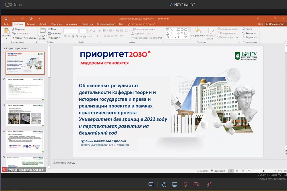 Нового руководителя членам учёного совета, ректорату и директорам департаментов НИУ «БелГУ» представил статс-секретарь – заместитель министра науки и высшего образования РФ Пётр Кучеренко.
