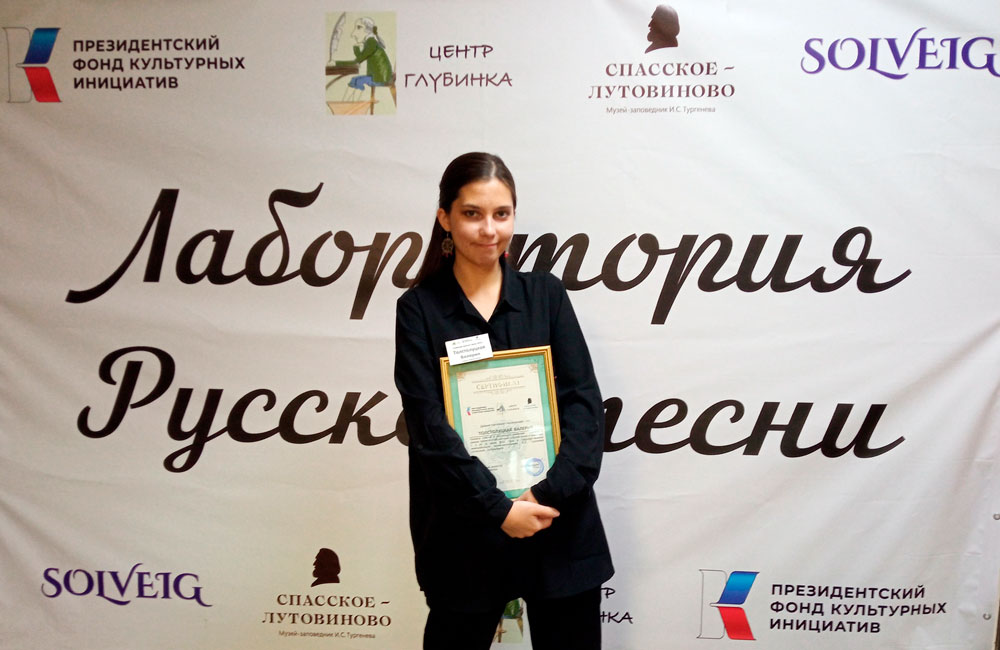 Студентка историко-филологического факультета педагогического института Валерия Толстолуцкая прошла обучение на всероссийском семинаре «Лаборатория русской песни и романса» для молодых поэтов и композиторов в городе Орле.