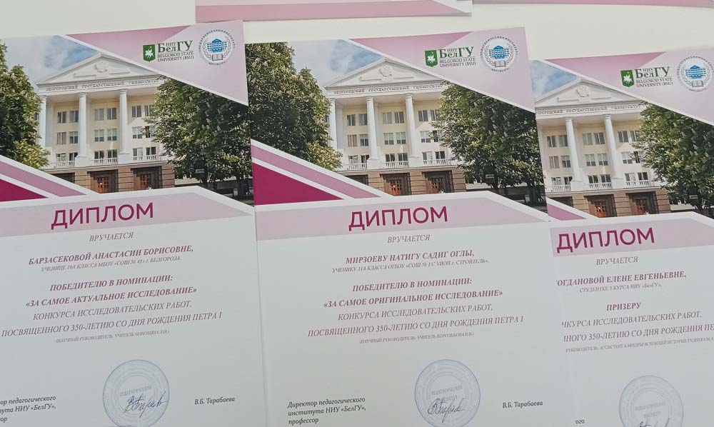В НИУ «БелГУ» завершился приуроченный к 350-летию со дня рождения Петра I конкурс исследовательских работ «Деяния Петра Великого на Белгородской земле», участие в котором приняли 92 человека.