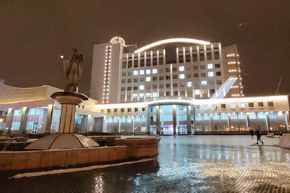 В вечернее время на фасаде главного корпуса вуза по улице Победы высветились буквы Z и V