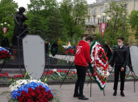 В день 76-й годовщины Великой Победы представители НИУ «БелГУ» возложили венок и цветы к памятнику "Скорбящая мать" на Соборной площади
