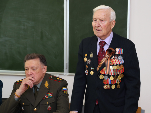 Гости обсудили со студентами вопросы значимости празднования Великой Победы для страны. Прошедший век остался в памяти ветеранов не только значимой датой Победы, но и не безызвестной «гонкой вооружений», войнами в Чечне и Афганистане. По словам бывшего начальника Семипалатинского ядерного полигона генерала-лейтенанта Юрия Коноваленко, агрессия со стороны некоторых государств в отношении России существовала всегда. Сегодня её сдерживает только существование ядерного щита.