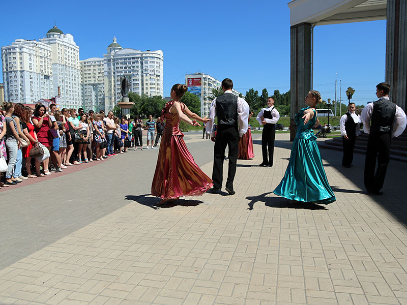 На послуживших сценой для выступлений ступеньках МКЦ студенты читали стихотворения Пушкина, погружавшие всех участников флешмоба и зрителей в пушкинскую эпоху и в мир прекрасного и поэтичного русского языка. На университетской площади прозвучали «Я помню чудное мгновенье», «Памятник», «К Чаадаеву», «Узник», «Анчар», «Няня».
