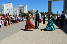 Праздник русского языка начался под звуки классической музыки. Создание творческой атмосферы праздника для участников и зрителей дополнил вальс в исполнении ансамбля бального танца «Вдохновение».