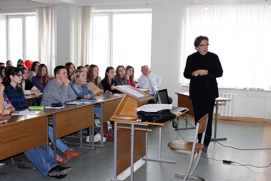Визит профессора, доктора филологических наук Михаэля Устиноффа прошёл в рамках завершения второго этапа «сэндвич» - модели. Француз прочитал две лекции о теории перевода и переводоведения на английском и французском языке.