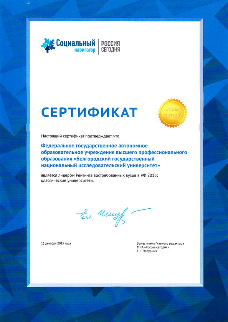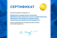 Среди классических вузов в пятерке лидеров из 87 вузов России оказался Белгородский государственный университет – он на пятом месте рейтинга после МГУ, Новосибирского госуниверситета, Томского и Нижневартовского государственных университетов.