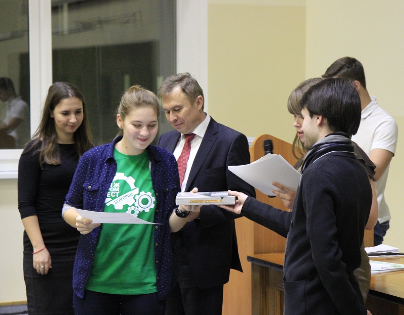 Ещё одна команда НИУ «БелГУ» под руководством Анатолия Шамраева победила в номинации «Лучший проект». Победители номинаций и активные участники образовательных площадок, среди которых были не только студенты, но и школьники Шуховского лицея №38, получили ценные подарки.