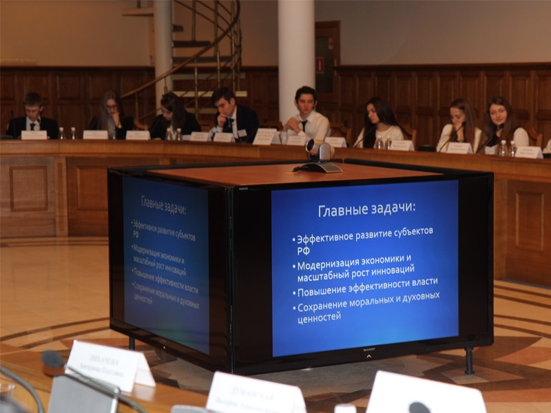 В ходе первого этапа игры – выборов Президента РФ – кандидаты представили свои программы и ответили на вопросы. Затем состоялось голосование в электронной форме, что позволяют условия зала Учёного совета вуза, где проходила игра. В результате большинство голосов было отдано за Евгения Милованова. Как отметил ректор, так как ни один из кандидатов не набрал более половины голосов, должен был состояться второй тур, но «играть во второй тур» не позволяло время, поэтому приступили к следующей процедуре. Сформировав правительство и обсудив, кто и какими полномочиями наделён, назначили по представлению избранного Президента судей Конституционного и Верховного судов и поучаствовали в законодательной деятельности.