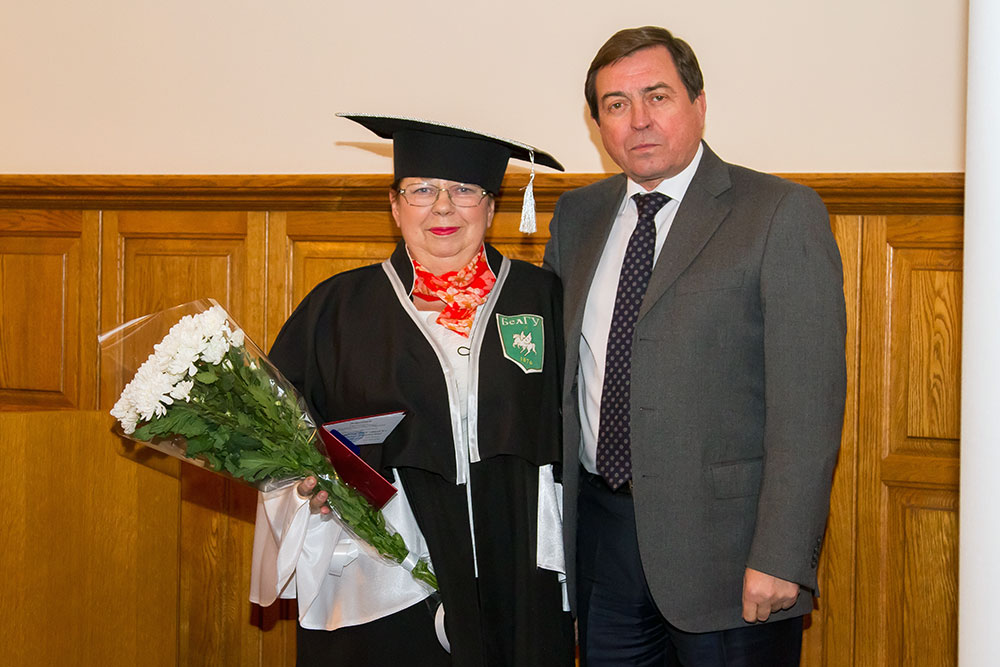 Аттестат «Почётный профессор НИУ «БелГУ» из рук ректора вуза Олега Полухина получила профессор кафедры дошкольного и специального (дефектологического) образования Людмила Волошина.