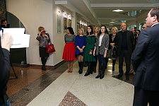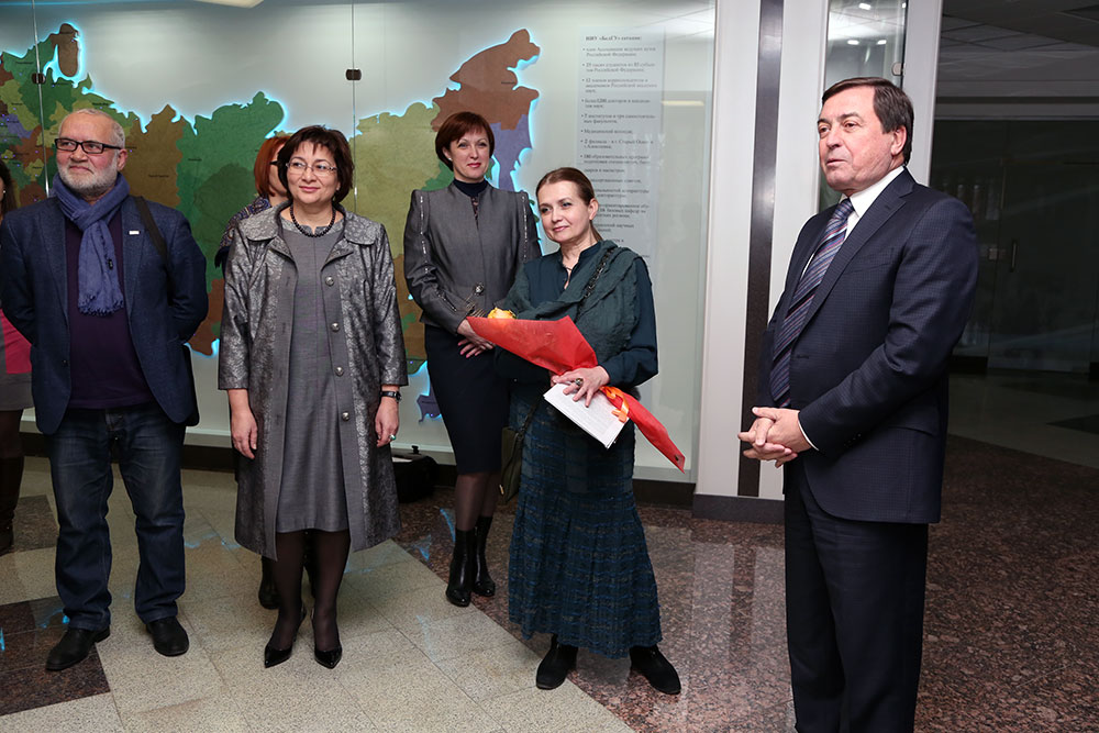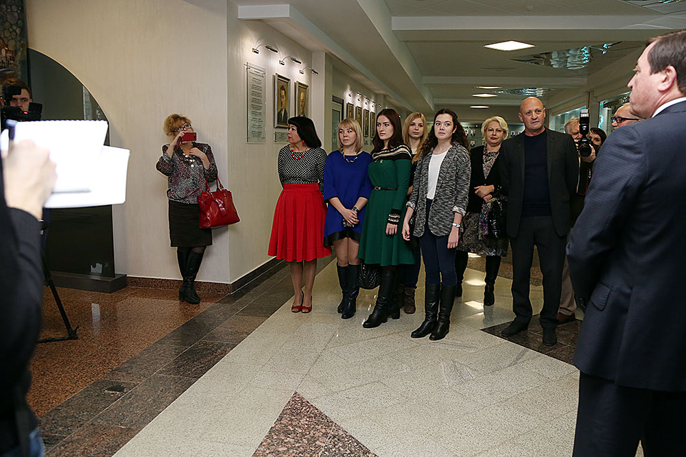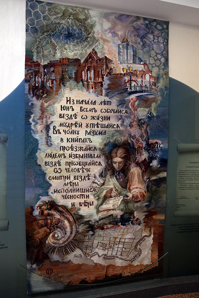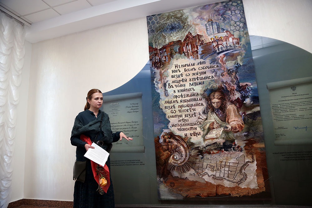 «Когда мы занимались разработкой нового дизайна и интерьера второго этажа, то хотелось чтобы на месте простой стелы появилось что-то оригинальное по смыслу. Мы пригласили Ольгу Александровну. И совместными усилиями было найдено творческое решение», - рассказал на презентации полотна ректор НИУ «БелГУ» Олег Полухин.
