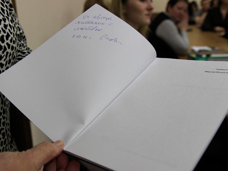 В Высшей школе управления НИУ «БелГУ» состоялась презентация книги «PRостой PR для бизнеса» преподавателя НИУ «БелГУ», специалиста по связям с общественностью Галины Сахневич