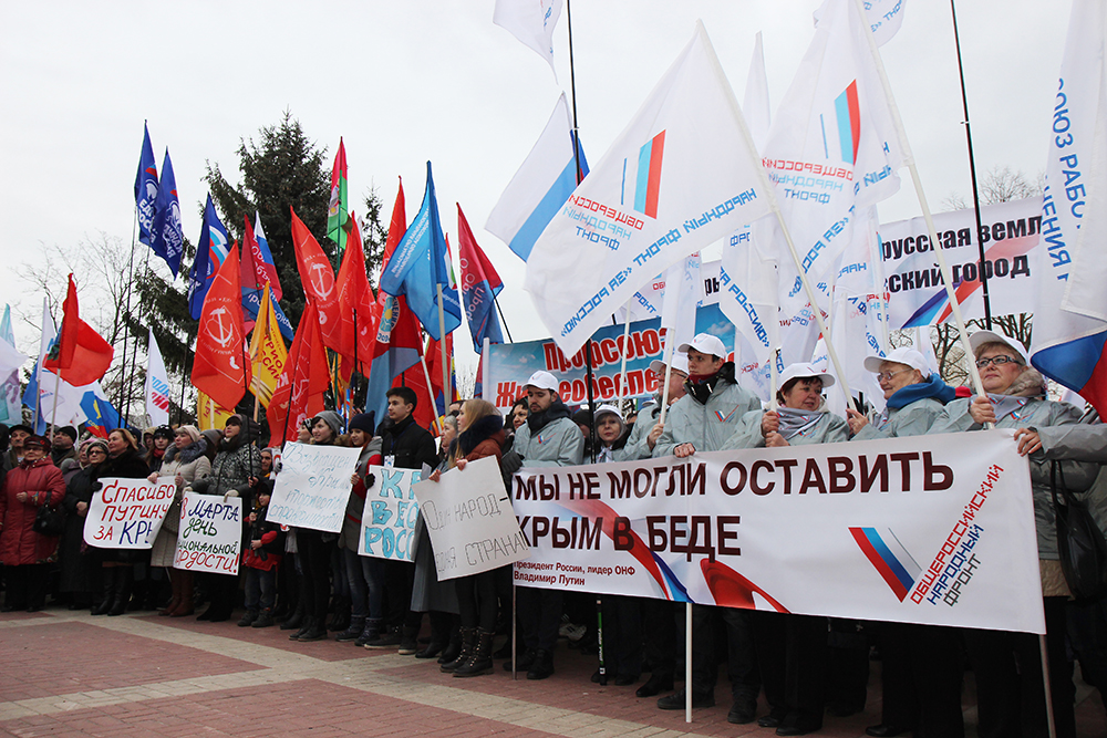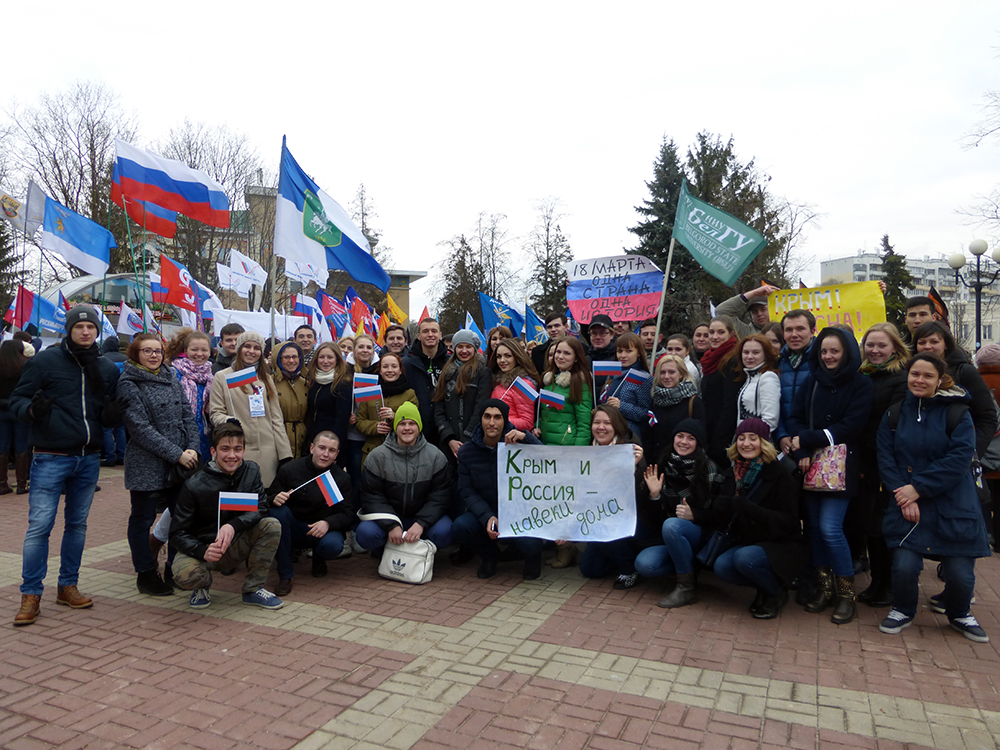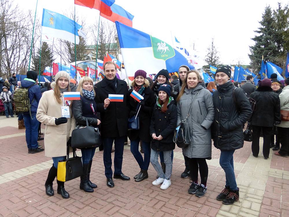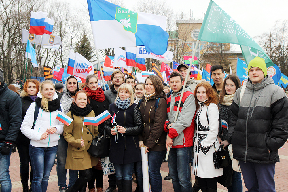 В праздничном митинге, который состоялся 18 марта 2016 года в Белгороде, участие студенты – активисты, преподаватели и сотрудники НИУ «БелГУ». Организаторами выступили отдел культурно-воспитательной деятельности и объединенный профком НИУ «БелГУ».