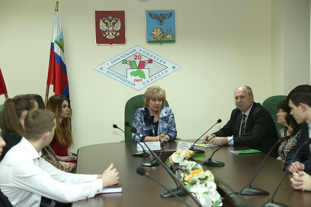 С приветственным словом к собравшимся обратились заместитель председателя Избирательной комиссии Белгородской области Елена Лазарева и секретарь комиссии Владимир Шовгеня. Руководители Комиссии рассказали об итогах выборов депутатов Белгородской областной Думы шестого созыва и подготовке к предстоящим выборам депутатов Государственной Думы Российской Федерации. Ребята задавали вопросы о работе аппарата Избирательной комиссии области, об организации процедуры проведения выборов.