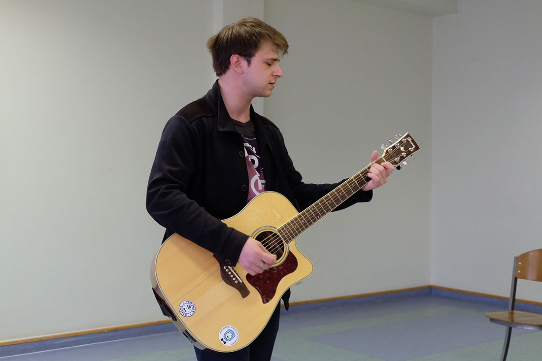 В программе литературно-музыкальной гостиной приняли участие специальные гости – современные белгородские поэты: Анастасия Кинаш и Александр Савицких. Приятным сюрпризом для зрителей стало выступление талантливого музыканта Даниила Кореева. Не остались безучастными и студенты БГТУ им. Шухова. Анастасия Дроздова покорила всех великолепным исполнением песни на испанском языке.