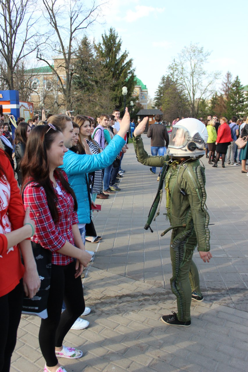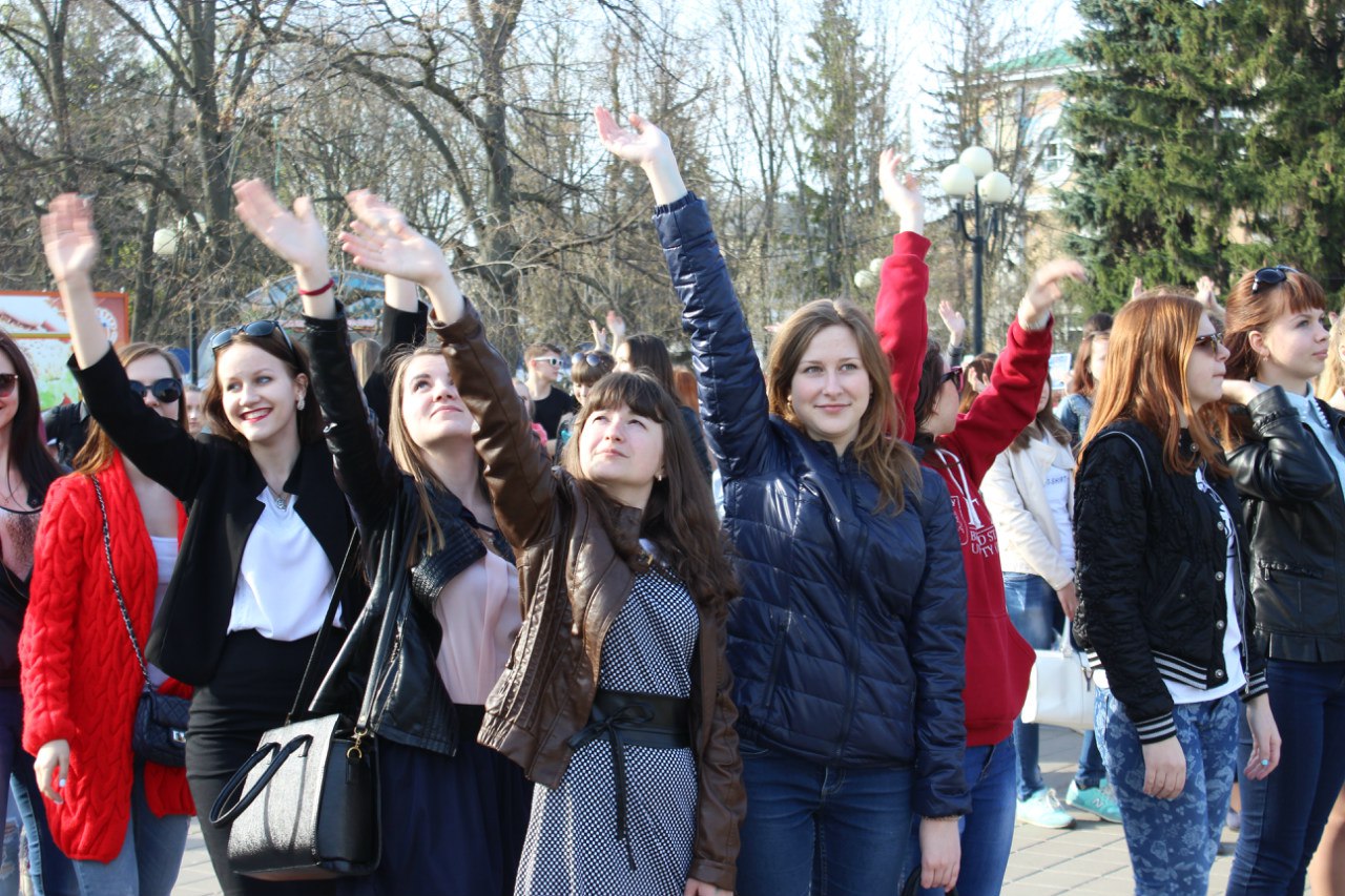 Свыше 500 студентов и школьников города Белгорода приняли участие в флешмобе, посвященном 55-летию первого полета человека в космос