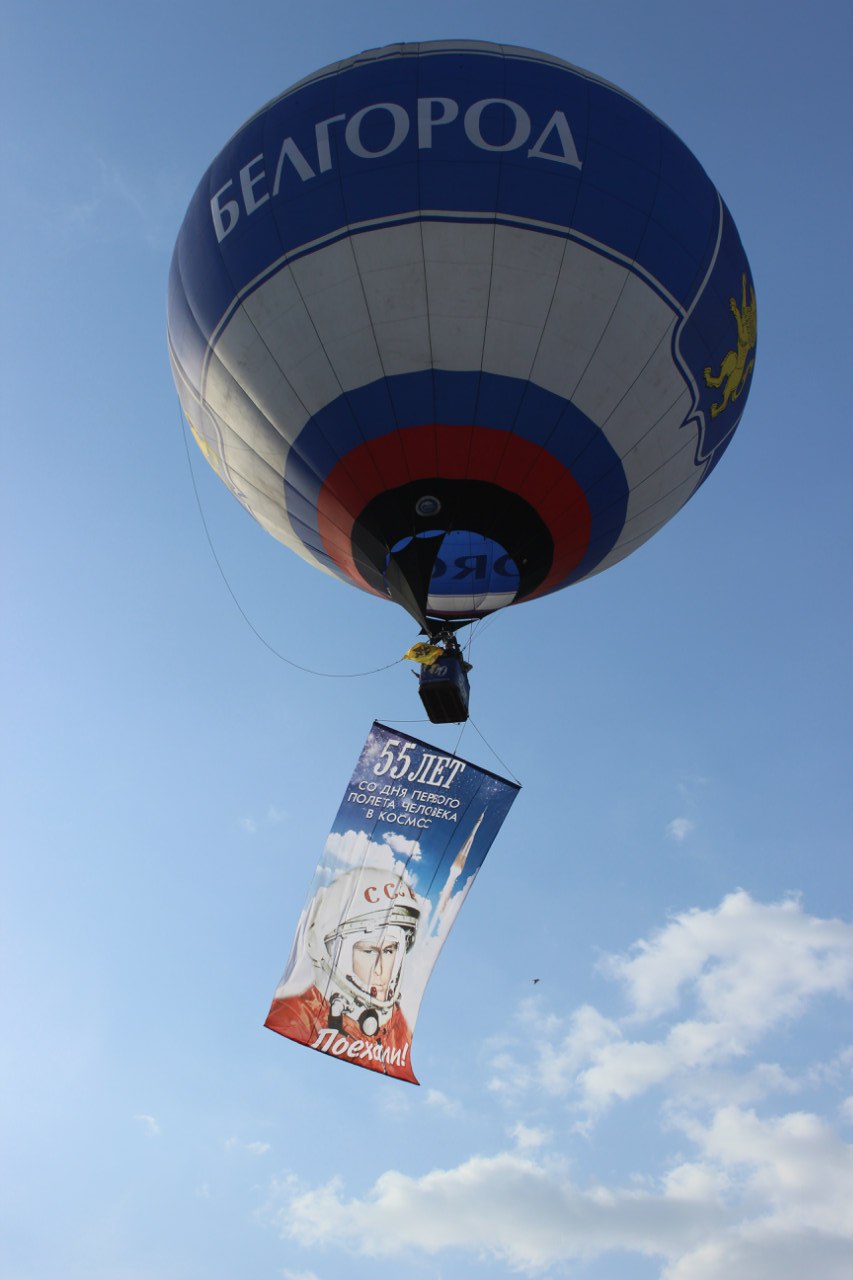 По замыслу организаторов все участники выстроились в самую знаменитую фразу Юрия Гагарина – «55 - Поехали!», а в небо отправился аэростат с лентой, на которой изображен Ю.А.Гагарин.