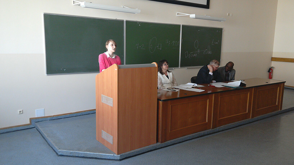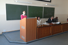 Студентка 5 курса Елизавета Лубкина выступила с докладом «Специфика юридического сленга», Алина Сиротенко, аспирант 1-го года обучения, с докладом «Проблема артикля в лингвистической концепции Абеля Матье (16 век)», Виоланта Третина, аспирант 1-го года обучения, представила доклад «Англоязычний и японоязычный компьютерный дискурс: сходства и различия».