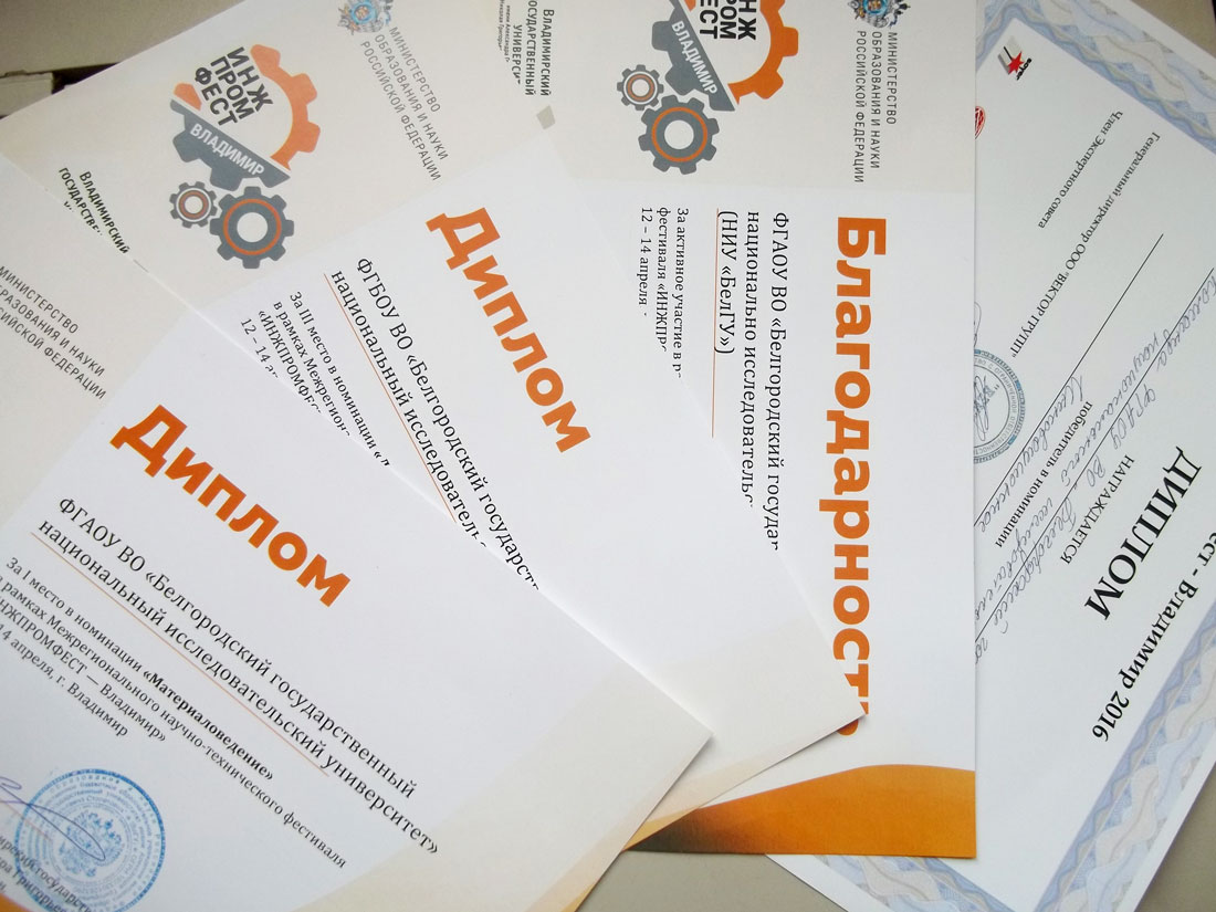 «Инжиниринговый клуб НИУ «БелГУ» занял I место в номинации «Материаловедение» и III место в номинации «Лазерный раскрой и маркировка» на фестивале научно-технического творчества «ИнжПромФест» во Владимире