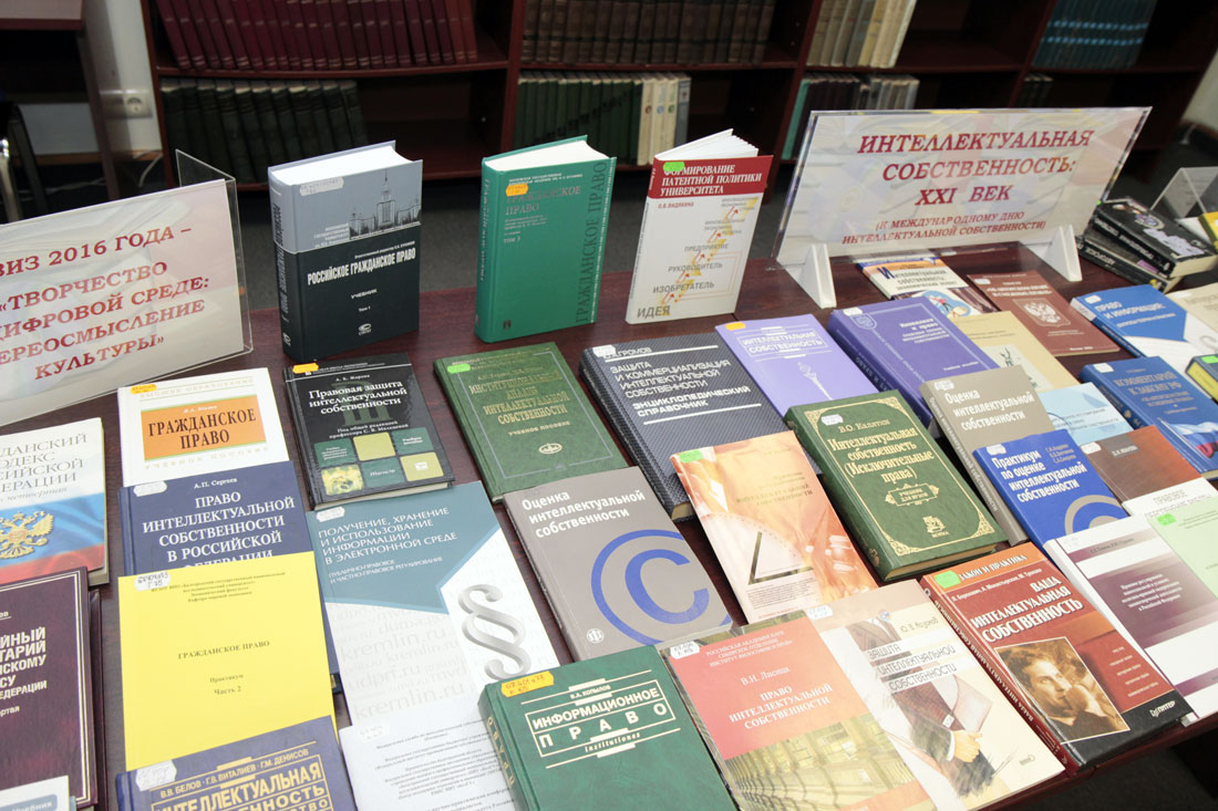 В НИУ «БелГУ» к Международному дню интеллектуальной собственности в читальном зале научной литературы Научной библиотеки имени Н.Н. Страхова (ул. Победы, 85, корп. 15, к. 2-1) открылась книжно-иллюстративная экспозиция «Интеллектуальная собственность: XXI век». Выставка будет работать до 30 апреля. Посетить выставку смогут все желающие.
