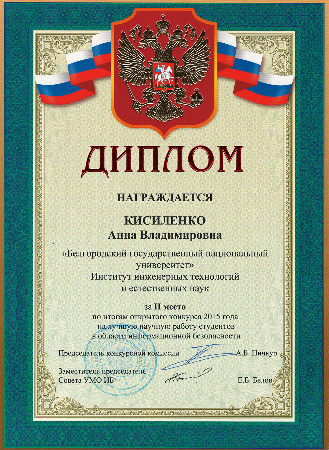 Итоги открытого конкурса на лучшую научную работу в области информационной безопасности были подведены в Москве. Студентка ИИТиЕН Анна Киселенко заняла второе место.