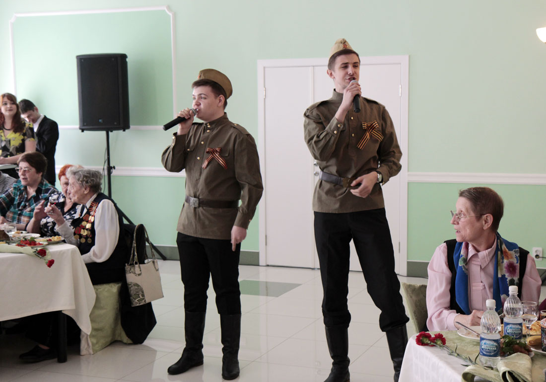 Прекрасным подарком для ветеранов вуза стали композиции военных лет в исполнении солистов арт-студии «Вереск» и группы «31 Регион». Исполнители великолепно передали каждый оттенок чувств песен, символизирующих собой целую эпоху.