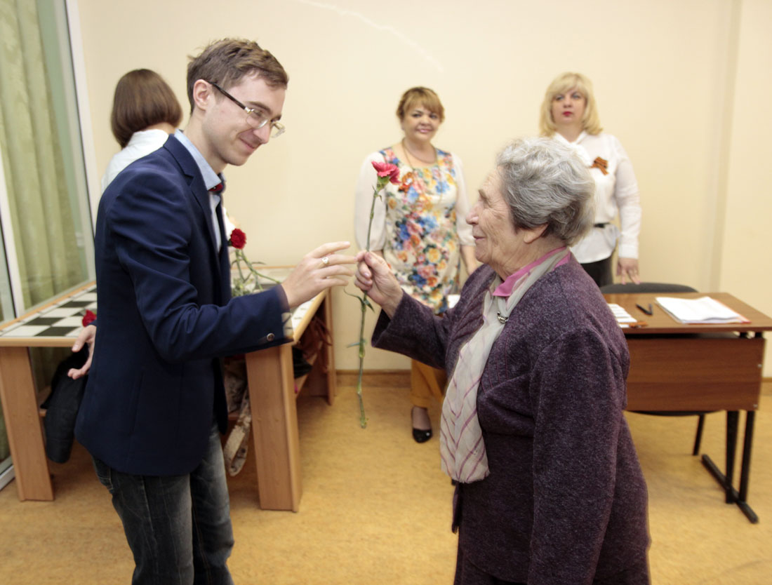 К присутствующим с приветственным словом обратился ветеран Великой Отечественной войны, председатель Совета ветеранов вуза Пётр Григорьевич Коняев. В своей речи он отметил величие подвига советских воинов, подаривших не только нашей Родине, но и всему миру будущее.