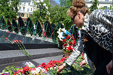 Они возложили к памятнику скорбящей Матери мемориала «Вечный огонь» венки и цветы и почтили память павших минутой молчания.