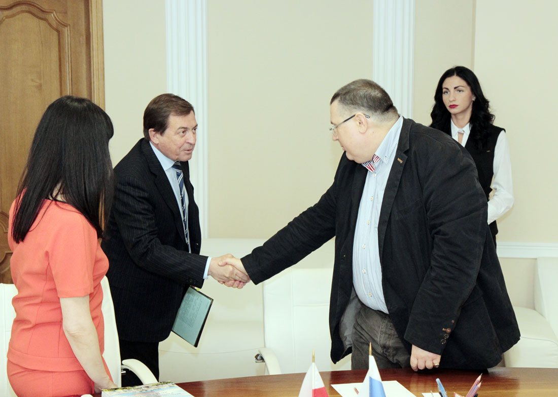 Олег Николаевич, приветствуя гостей, заметил, что очень рад этому событию. Вообще, Варминьско-Мазурский университет и БелГУ договорились о сотрудничестве ещё в марте 2015 года. В настоящее время 13 студентов Юридического института НИУ «БелГУ» проходят обучение в польском университете по специальной программе на английском языке. Но в перспективе запланировано сотрудничество и по другим образовательным направлениям.