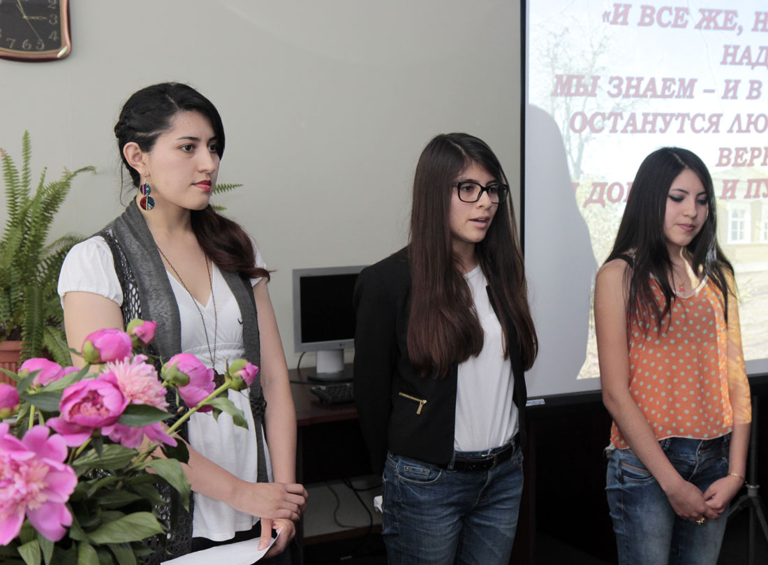 Слово Пушкина звучит на всех материках и континентах, о чем свидетельствует чтение стихотворений («Няне», «Виноград», «Памятник») интернациональным составом обучающихся подготовительного факультета ИМКиМО (Ангола, Вьетнам, Сьерра-Леоне, Боливия, Перу, Мексика, Бразилия). Участники встречи вновь и вновь открывали для себя «своего Пушкина».