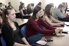 Слушателями и зрителями литературной гостиной стали студенты Института экономики, Института межкультурной коммуникации и международных отношений, Института инженерных технологий и естественных наук.
