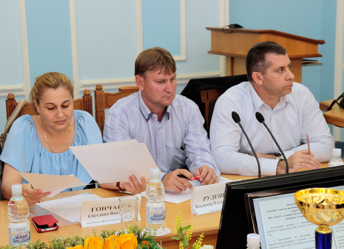 На заседании отметили победителей спартакиады институтов и факультетов университета в прошедшем учебном году. Третье место поделили спортсмены Института экономики и объединённая команда медицинского Института и медколледжа. Второе место заняли студенты Института инженерных технологий и естественных наук. Лидерами спартакиады названы спортсмены педагогического Института. Олег Николаевич поздравил ребят и вручил заслуженные кубки.