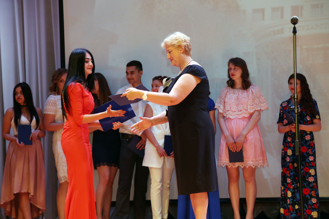 «Дорогие выпускники, уважаемые коллеги и гости! Сегодня в солнечный июньский день я хочу пожелать вам большого личного счастья, чтобы жизнь ваша была доброй и солнечной. Чтобы всё хорошее, что вы получили в стенах нашего университета, шло с вами по жизни долгие годы!», - подчеркнула Виктория Борисовна.