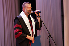 В завершение церемонии награждения декан историко-филологического факультета Андрей Папков пригласил на сцену выпускников для прочтения клятвы филолога, историка и документоведа.