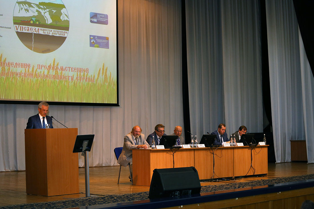 Открыл пленарное заседание съезда член-корреспондент РАН, президент Общества почвоведов имени В. В. Докучаева, декан факультета почвоведения МГУ им. М.В.Ломоносова Сергей Шоба: «Съезд проходит под девизом «Почвоведение - продовольственной и экологической безопасности страны». Продовольственная безопасность, импортозамещение сегодня у всех на слуху. И наш девиз не случайный. Экономико-политическая ситуация, санкции в настоящее время диктуют необходимость развития сельского хозяйства по пути рационального землепользования».