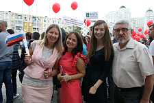 В завершение праздника все присутствующие выпустили в небо шары цветов российского триколора.