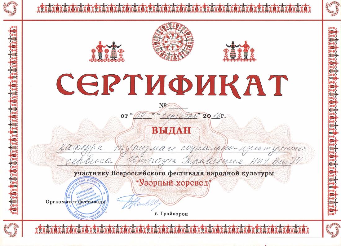 Студенты и сотрудники кафедры туризма и социально-культурного сервиса Института управления представили Белгородский государственный национальный исследовательский университет на фестивалях народной культуры «Узорный хоровод» и «Белгородская слобода», проходивших в Грайвороне. В культурно-парковом комплексе «Петровская круча» прошло массовое, динамичное, яркое, уникальное и неповторимое событийное мероприятие. Студенты и преподаватели познакомились с умениями белгородских ремесленников.