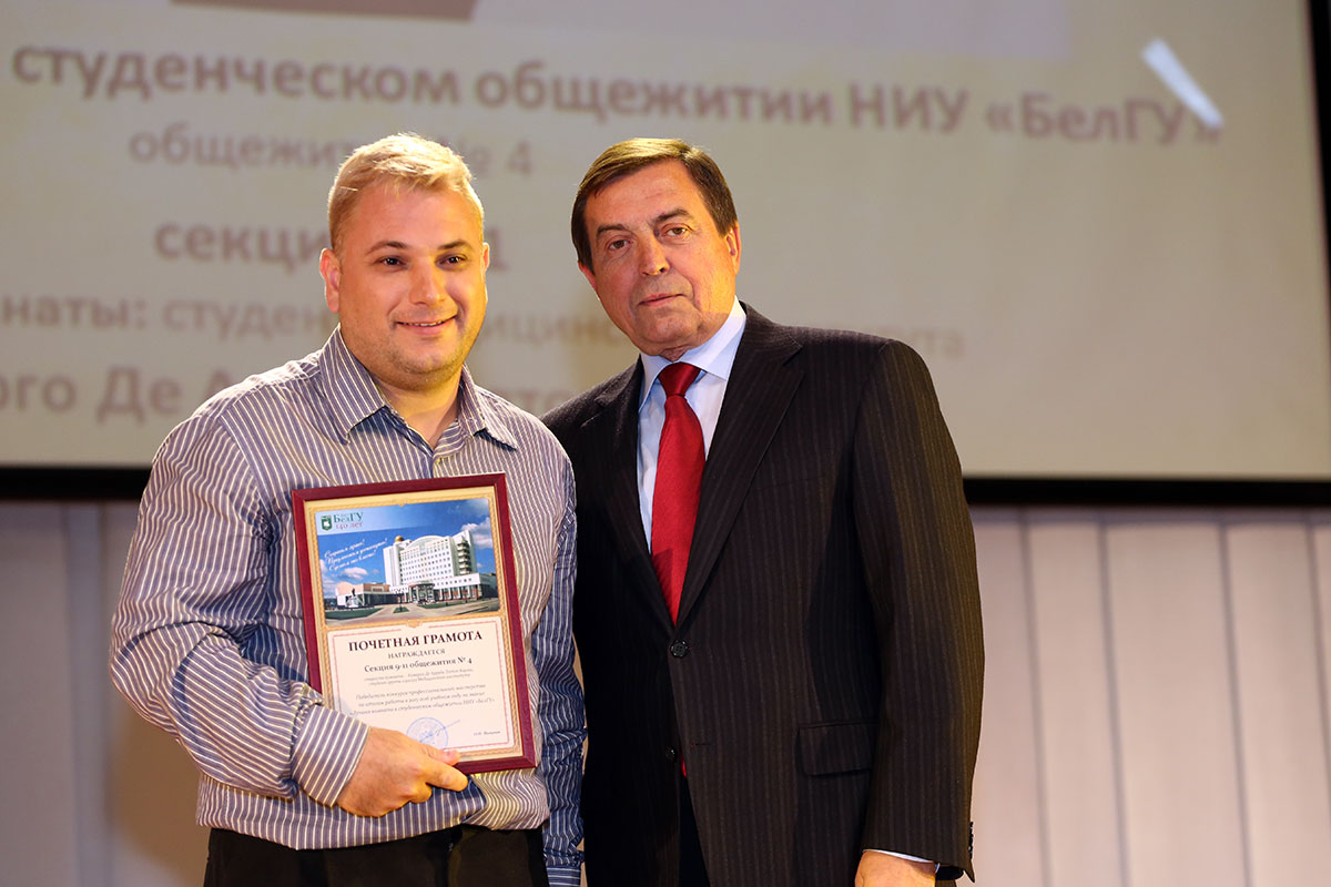Почётные грамоты из рук ректора получили представители лучших институтов и заведующие кафедрами, отличившимися в научной, исследовательской и образовательной деятельности. Были награждены лучшие учёные, преподаватели, кураторы студенческих групп, руководители творческих коллективов, представители студенческих групп и общежитий, лучшие работники административно-управленческого персонала, учебно-вспомогательного, административно-хозяйственного персонала. Также были награждены лучшие представители Медицинского колледжа и Старооскольского филиала НИУ «БелГУ».