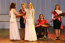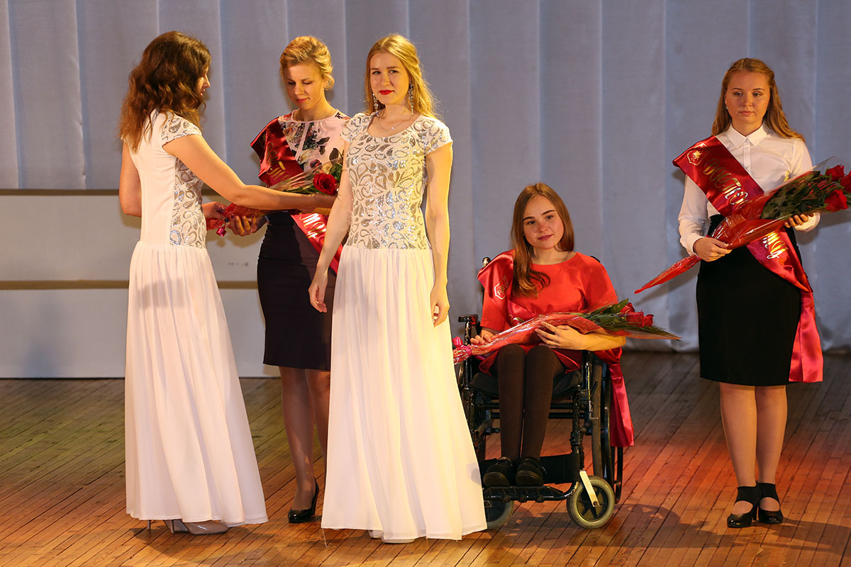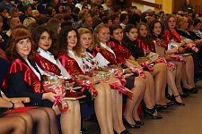 Первыми на сцену были приглашены лучшие выпускники НИУ «БелГУ» 2016 года, представленные к награждению медалью «Достойному» возрождённой к юбилею вуза. Они получили медали и свидетельства из рук ректора НИУ «БелГУ», профессора Олега Полухина, который поздравил студентов с присвоением почётного звания и пожелал достойно нести его в жизни.