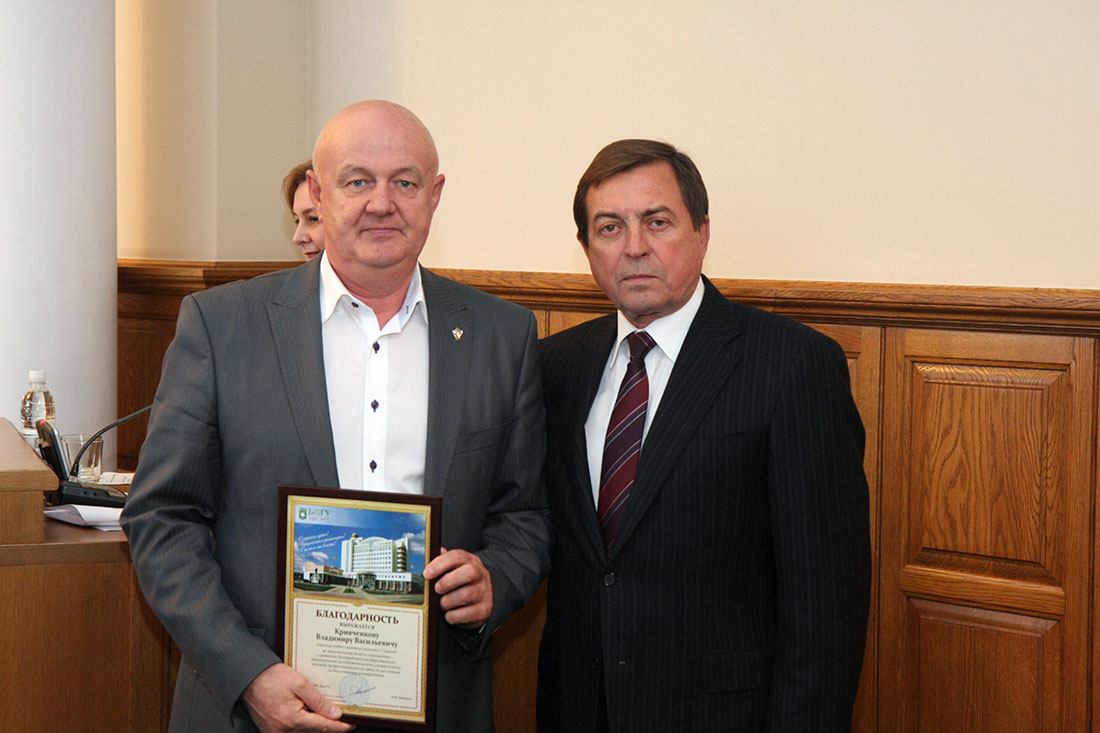 Почетное звание «Почетный работник высшего профессионального образования РФ» было присвоено ученому секретарю ученого совета университета, кандидату филологических наук, доценту Ирине Чеботаревой. Почетную грамоту губернатора Белгородской области получил проректор по заочному обучению и дополнительному образованию Владимир Шаповалов.