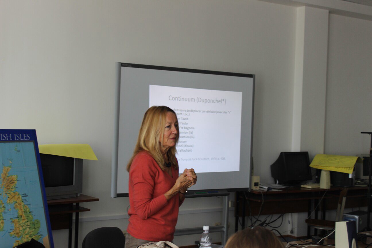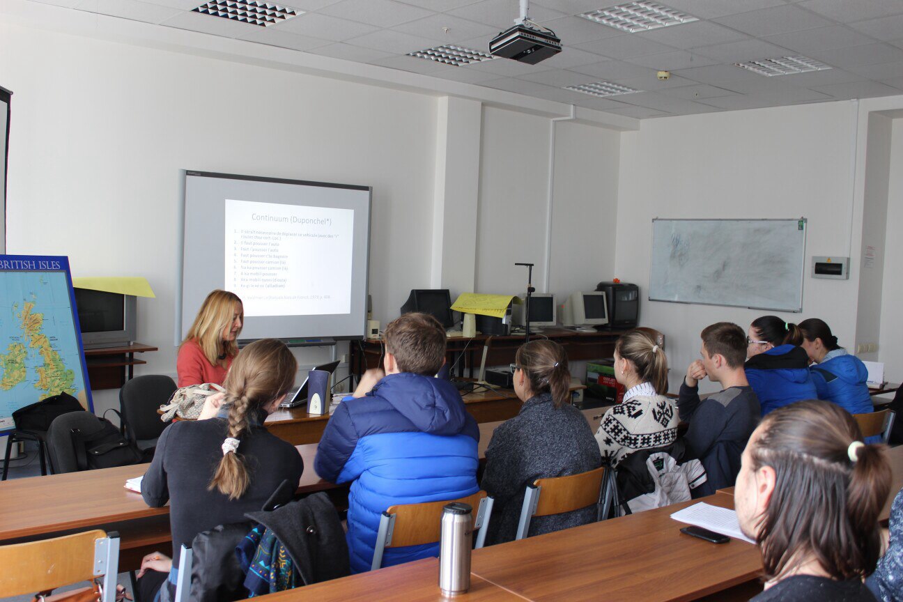 Профессор Кароль де Фераль уже прочитала две лекции для студентов и преподавателей Института межкультурной коммуникации и международных отношений НИУ «БелГУ». Первая лекция прошла на французском языке и была посвящена теме франкофонии. Вторую лекцию Кароль де Фераль провела на английском языке и затронула такое явление как Pidgin-english.