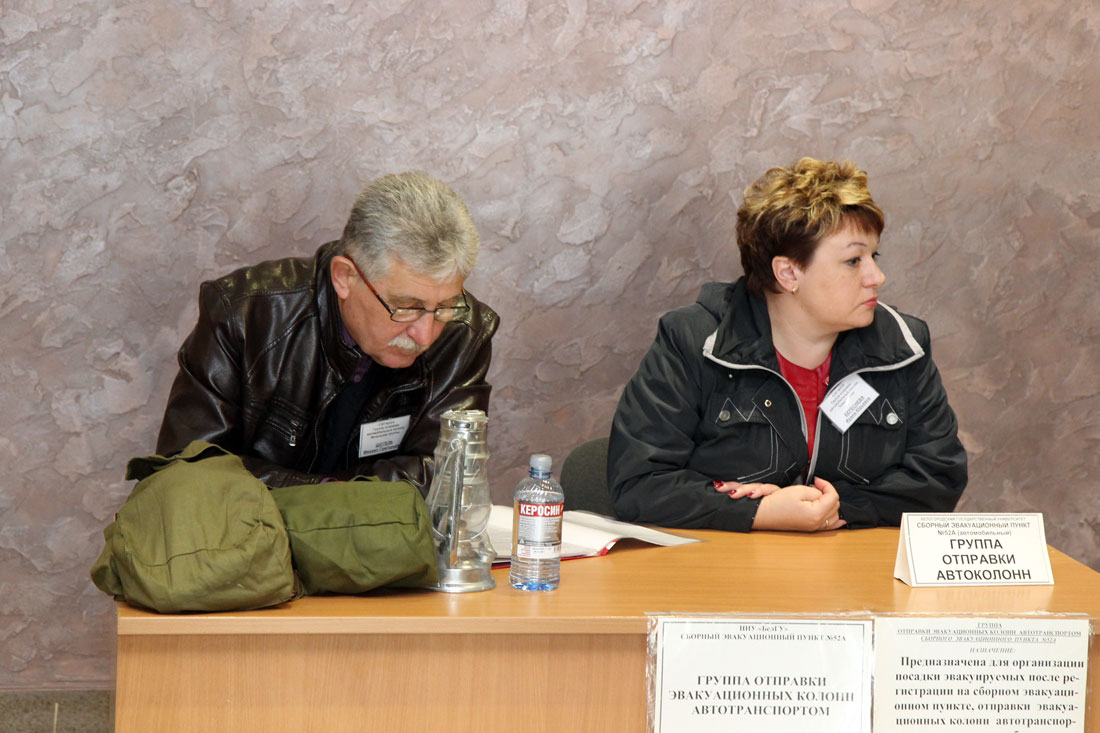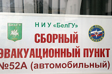 Особое внимание уделялось выполнению эвакуационных мероприятий в исполнительный период в структурных подразделениях для переноса образовательной деятельности в безопасный район. Для приема эвакуируемых, учета, регистрации и отправки их в безопасный район были развернуты рабочие группы сборного эвакуационного пункта (СЭП) №52А. Участникам учения была показана практическая работа элементов (рабочих групп) сборного эвакуационного пункта №52А (здание МКЦ НИУ «БелГУ»). Начальник отдела пожарной безопасности Виктор Кракашов продемонстрировал способы тушения очага возгорания с помощью первичных средств пожаротушения на натурном участке до прибытия спецподразделений. На последнем этапе учения провели эвакуацию студентов и сотрудников из зданий учебного комплекса №2 (уч. корп. №15).