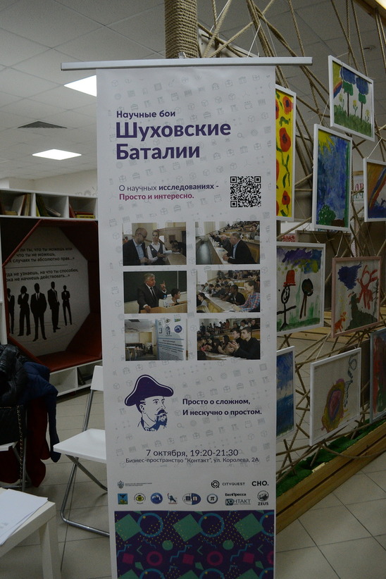 Межрегиональный конкурс «Научные бои «Шуховские баталии» проводится в Белгороде третий год подряд. На территории бизнес-пространства «КОНТАКТ» в интеллектуальном поединке сразились 11 молодых исследователей из НИУ «БелГУ», БГТУ им. В.Г. Шухова, БГИИК, БУКЭП, ЮЗГУ и Курского государственного медицинского университета. Они должны были максимально просто, доступно и ярко рассказать о сложных научных разработках и проектах.