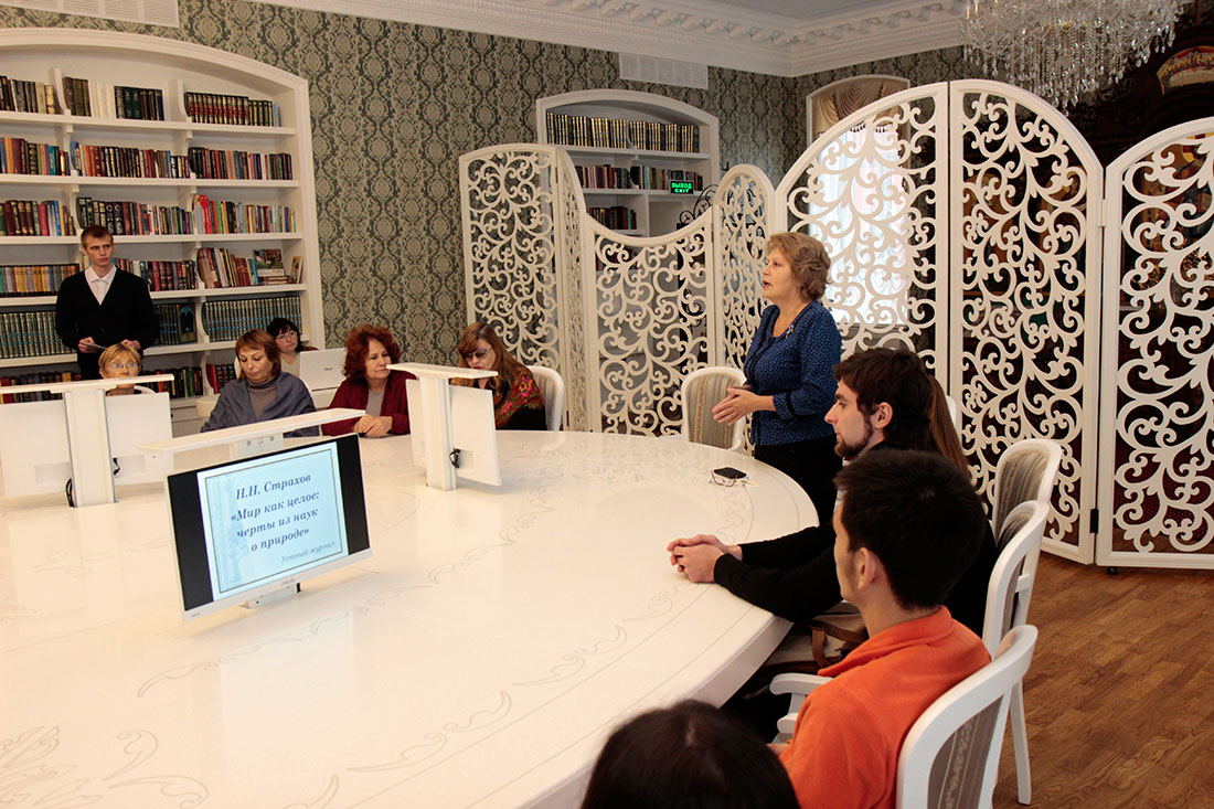В обновленном зале библиотеки-музея на социально-теологическом факультете НИУ «БелГУ» состоялся устный журнал по книге Николая Николаевича Страхова «Мир как целое»