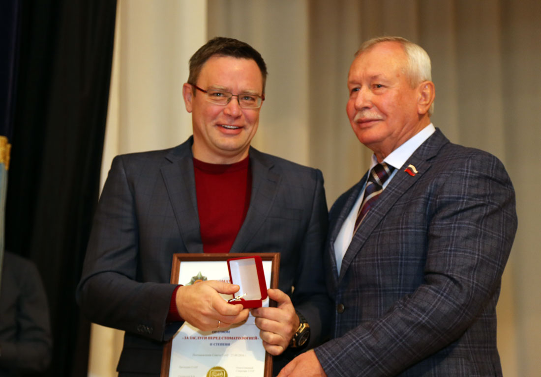 На пленарном заседании были отмечены партнеры и коллеги, внесшие значительный вклад в развитие направления «Стоматология». Профессор Александр Цимбалистов провел церемонию награждения, вручив ордена «За заслуги перед стоматологией» 1-ой и 2-й степеней генеральному директору компании «ВладМива» Владимиру Чуеву, главному врачу медицинского центра "