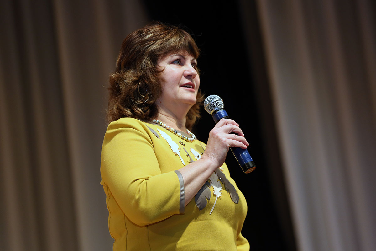 «Сколько сделано преподавателями, профессорами, чтобы нам приоткрыть глаза, души, сердца. Большое спасибо за эти скрепы! Спасибо за ту интонацию, которая звучит в этом зале, когда мы вместе смеёмся и вместе плачем! Нам пора всем задуматься над вопросом: а что ты сделаешь для вуза, когда покинешь стены его?», - отметил в своем выступлении Заслуженный работник культуры РФ, Заслуженный деятель искусств России. Почётный гражданин г. Белгорода, депутат Белгородской областной Думы, директор Белгородского государственного академического драматического театра имени М.С. Щепкина, выпускник факультета русского языка и литературы Виталий Слободчук.