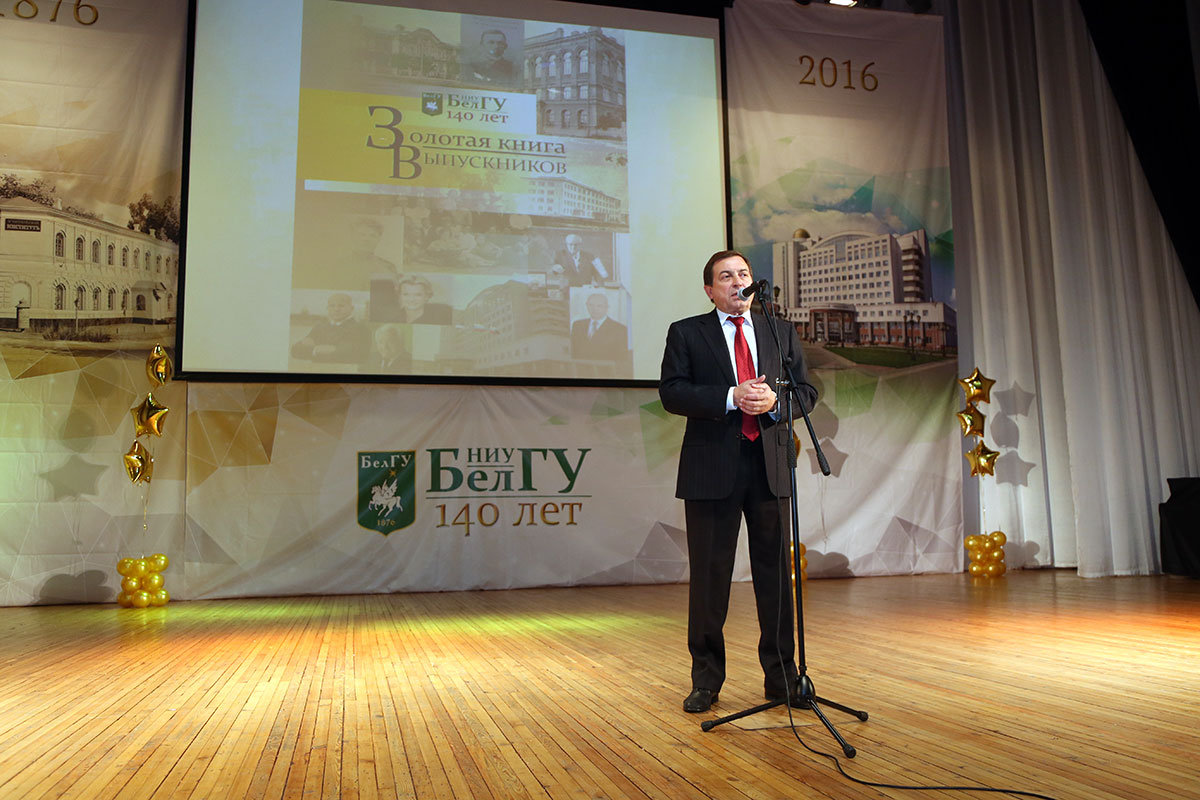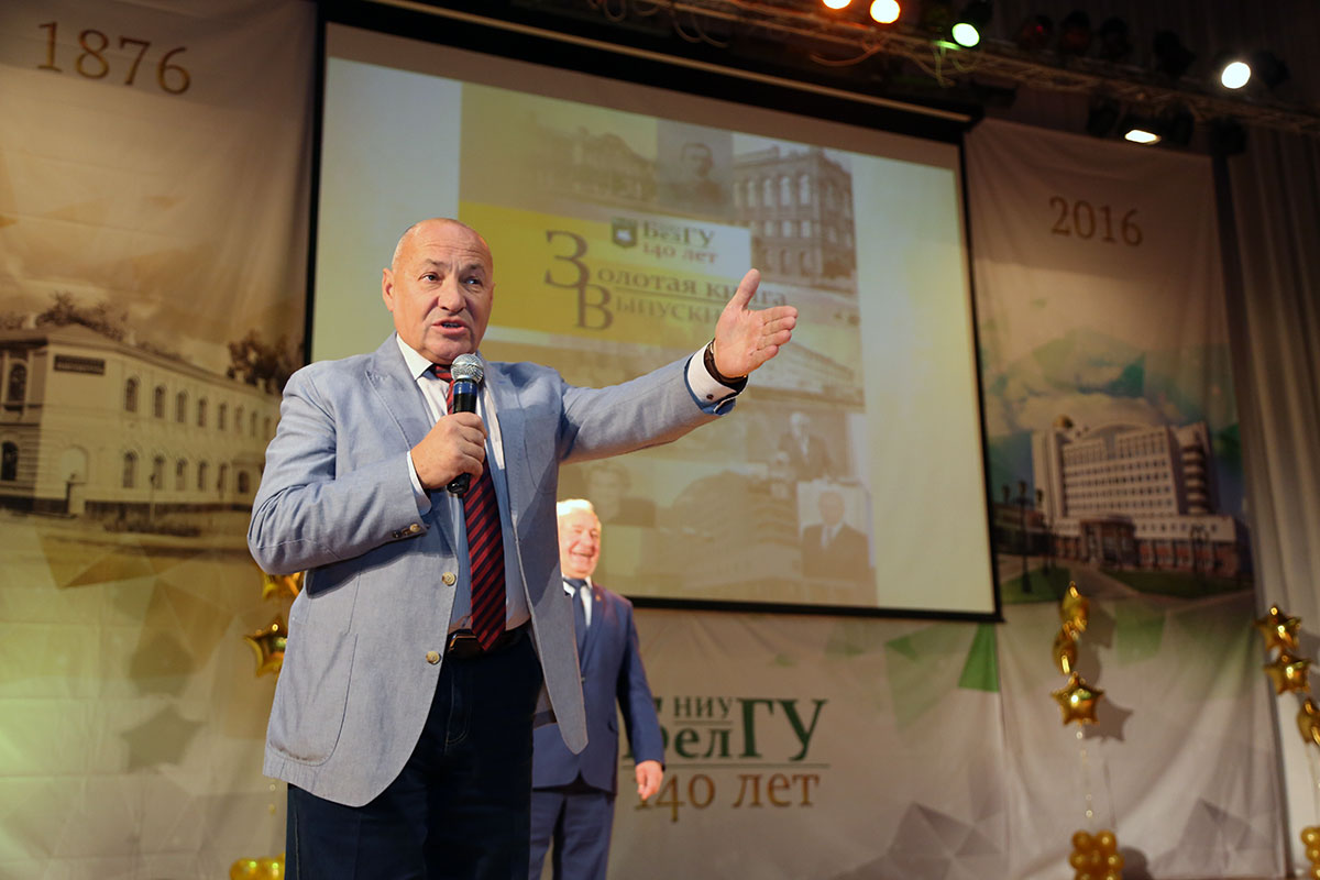 «Нас объединили в этот праздничный день чувства любви, признательности родному вузу, потому что наши педагоги учили нас жизни, каждый свой шаг сверять по самой высокой шкале человеческих отношений, воспитывали в нас интеллигентов. Поэтому среди выпускников так много людей пассионарных, ярких, сыгравших большую роль в развитии Белгородской области. И вот настало время отдавать долги. Главная наша задача – в создании корпоративного духа выпускников и студентов», - приветствовал со сцены председатель правления ассоциации выпускников НИУ «БелГУ», доктор педагогических наук, Заслуженный работник культуры РФ, начальник управления культуры Белгородской области выпускник факультета русского языка и литературы Сергей Курганский.
