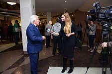 Поздравил участников съезда Заслуженный работник культуры РФ, директор ГТРК «Белгород», выпускник факультета физической культуры Юрий Помельников: «Мы объединились в ассоциацию выпускников, чтобы отдавать долги родному вузу. Готов работать, сотрудничать с университетом. Сегодня мы создали базовую кафедру и стали брать студентов-очников на телевидение. Мы готовим кадры, которые завоёвывают награды на федеральных конкурсах – и это бывшие выпускники университета. Я рад, что вижу в зале много знакомых лиц. Здесь и герой моих репортажей – выдающийся спортсмен-олимпиец Юрий Куценко. Великий наш земляк и выпускник спортфака».