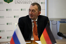 На второй день конференции ректор НИУ «БелГУ» Олег Полухин встретился с руководителем московского представителя ДААД Петером Хиллером и представителем Бюро по связям Свободного университета в Берлине Тобиасом Стюдеманном. Стороны обсудили возможности сотрудничества в научно-исследовательской сфере и необходимость развития как образовательных программ, предусматривающих получение двойных дипломов, так и развитие академической мобильности в целом.