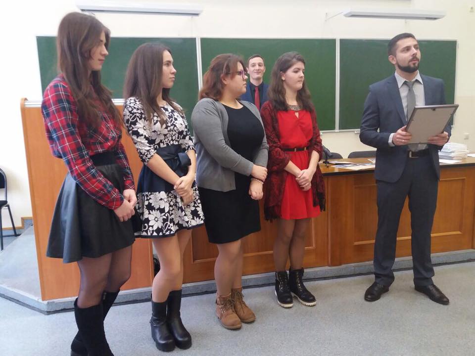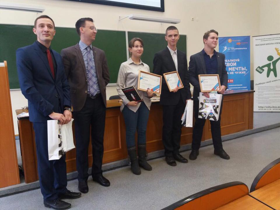 Специальный приз за лучшую проработку маркетинговой политики проекта от заведующего кафедрой менеджмента и маркетинга Бориса Тхорикова получила команда, предложившая проект по созданию сервиса «Экспресс-питание» (Юлия Губенко, Алина Жайворонкина, Анастасия Жиглова, Дарья Кудрявцева, Ангелина Рядинская).