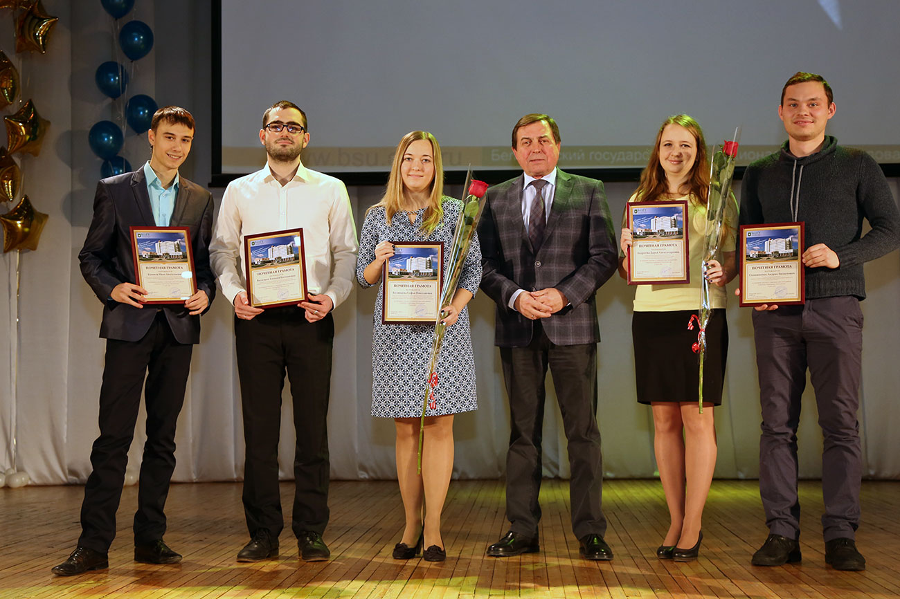 Церемонию награждения спортсменов, тренеров и преподавателей продолжили заместитель начальника департамента внутренней и кадровой политики области, начальник управления физической культуры и спорта Белгородской области, выпускник факультета физической культуры Олег Сердюков и заместитель начальника управления по физической культуре и спорту администрации города Белгорода Наталья Тонких, которые также выразили благодарность коллективу Белгородского госуниверситета и пожелали спортсменам дальнейших побед.